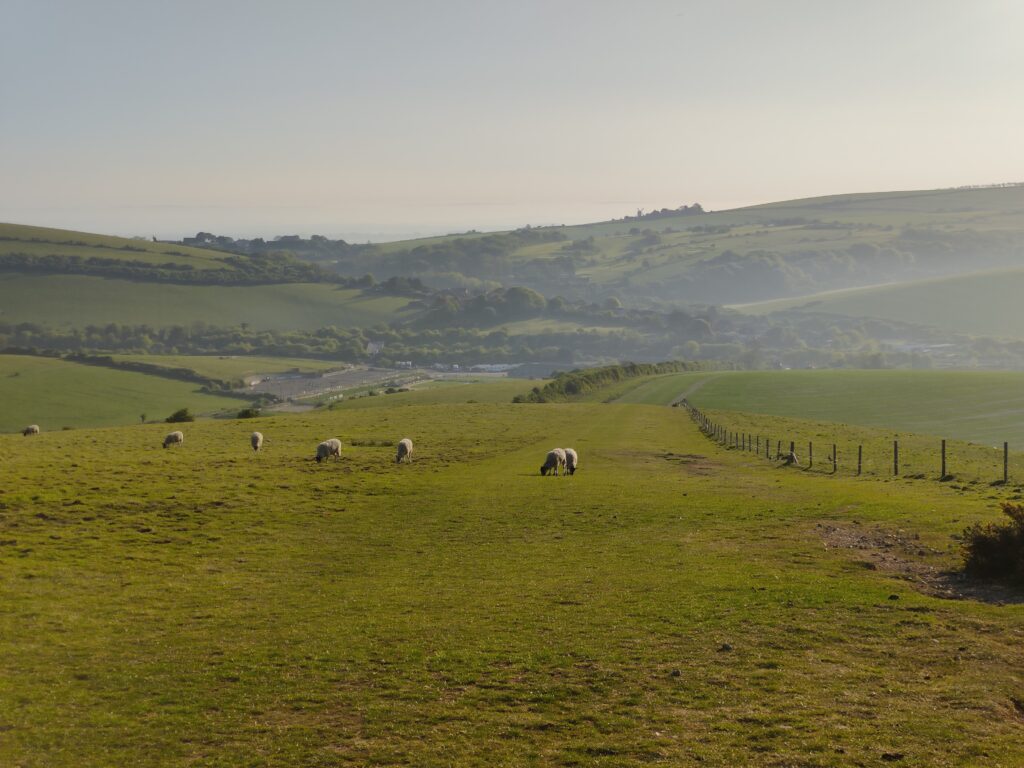 After this advertising campaign, we spied a bunch of buildings and thought that this was where we were headed for the evening, Saddlecombe Farm. However, in the end, it turned out to be pub, the Devil’s Dykes Inn. Well… Guess we had a couple more kilometres to go then! We dropped down off of Fulking Hill, through the Devil’s Dyke (which was just a nice narrow vale filled with gorse) and arrived at Saddlecombe Farm for real. We should probably take a map reading course. My knee was still a bit stiff and a touch sore, so I was glad to stop for the day. We had nearly done 40km as well! We crossed into the farm and met the farmer Roly, who was renting the property and land (is… that how farming works?) and who guided us into one of his small empty fields where we could pitch our tent. No WiFi, no showers and barely much hot water. No café or food (we arrived too late), and no phone signal. But it was a wonderful setting nonetheless and we were the only ones there. I ate dinner twice that night, I was so hungry. And, I had enough food for that. Sleep arrived at the same time as hiker’s midnight.